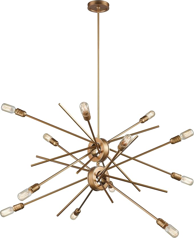 - Designed for bright, widespread illumination with twelve 60 Watt A19 bulbs (not included); dimensions: 42″ W x 25″ D x 30″ H (Max H: 74″)